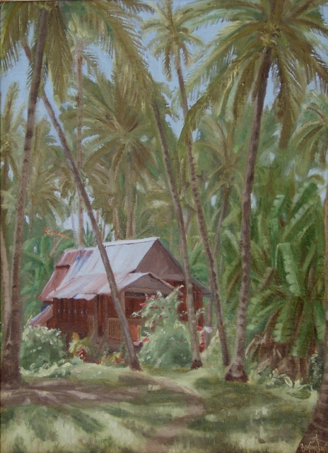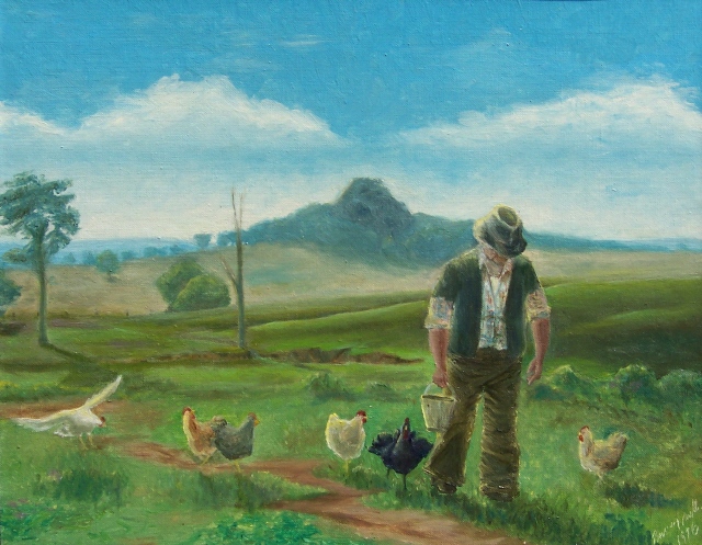 Medium: Oil on particle board. Dimensions: 30.5cm wide x 40.6cm high