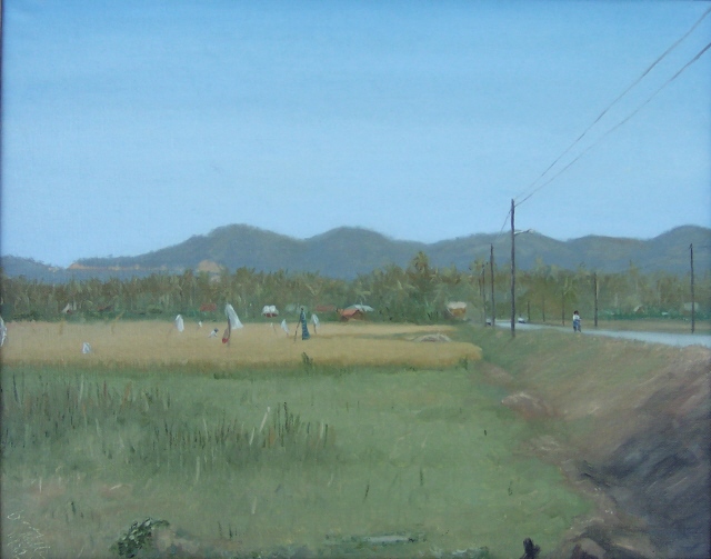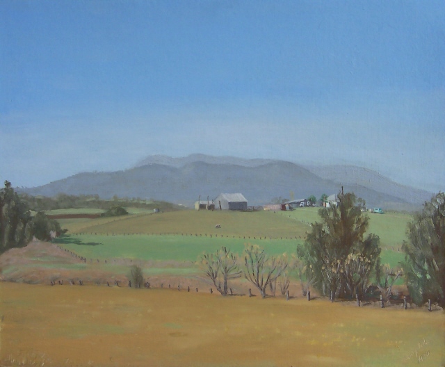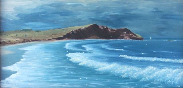 Medium: Oil on particle board. Dimensions: 35.5cm wide x 25.5cm high